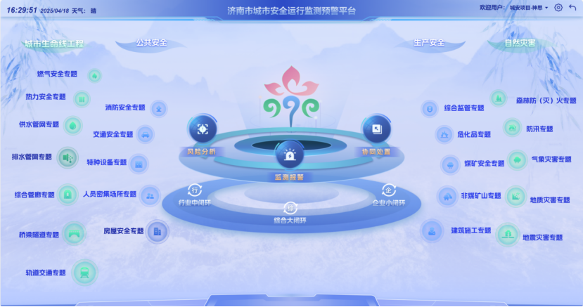 神思電子作為濟(jì)南市人工智能產(chǎn)業(yè)鏈主企業(yè),在智慧城市建設(shè)過程中持續(xù)深化數(shù)據(jù)應(yīng)用與創(chuàng)新,聚焦城市安全運(yùn)行,以提升城市安全風(fēng)險(xiǎn)監(jiān)測預(yù)警和應(yīng)急處置能力為目標(biāo),構(gòu)建風(fēng)險(xiǎn)監(jiān)測“一張網(wǎng)”,全面感知城市生命線、公共安全、生產(chǎn)安全和自然災(zāi)害四大領(lǐng)域安全風(fēng)險(xiǎn)。